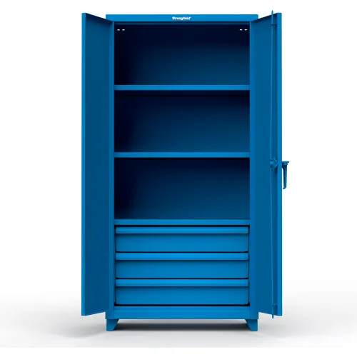 Stronghold Heavy Duty Industrial Storage Cabinet with 3 Drawers, 14 Gauge, 36"W x 24"D x 75"H, Blue