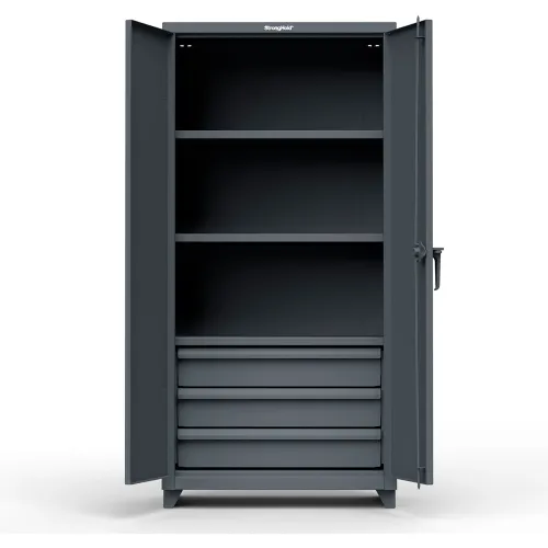 Stronghold HD Industrial Storage Cabinet with 3 Drawers, 14 Gauge, 36"W x 24"D x 75"H, Dark Gray