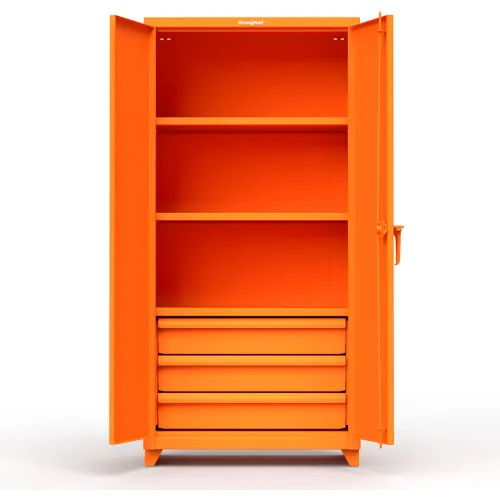 Stronghold Heavy Duty Industrial Storage Cabinet w/ 3 Drawers, 14 Gauge, 36"W x 24"D x 75"H, Orange