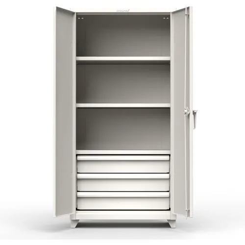 Stronghold Heavy Duty Industrial Storage Cabinet with 3 Drawers, 14 Gauge, 36"W x 24"D x 75"H, White