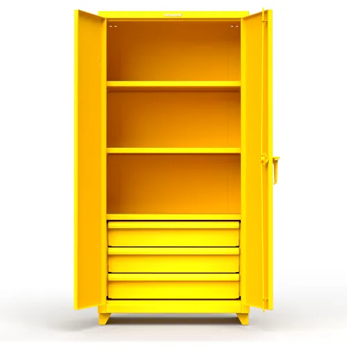 Stronghold Heavy Duty Industrial Storage Cabinet w/ 3 Drawers, 14 Gauge, 36"W x 24"D x 75"H, Yellow