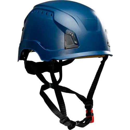 Traverse Industrial Climbing Helmet, 4-Point Chin Strap, Vented, Type 1, Navy