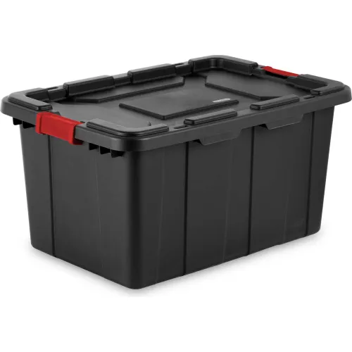 Sterilite Plastic Industrial Tote, 27 Gal Capacity, 30-1/2"L x 20-5/8"W x 15-1/4"H, Black/Racer Red - Pkg Qty 4