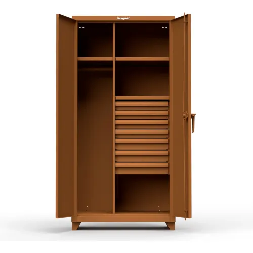 Stronghold Industrial Uniform Cabinet with 7 Drawers 36"W x 24"D x 75"H , Brown