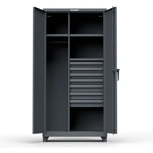 Stronghold Industrial Uniform Cabinet with 7 Drawers 36"W x 24"D x 75"H , Dark Gray