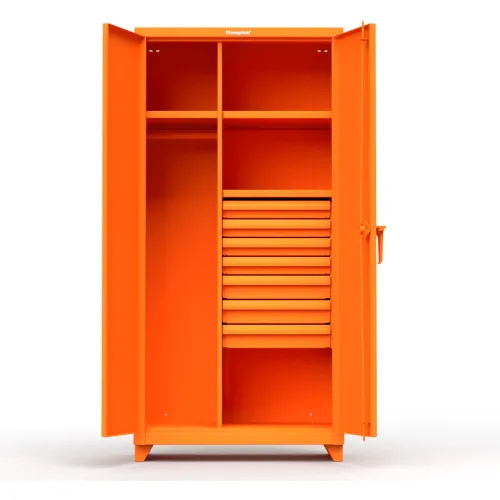 Stronghold Industrial Uniform Cabinet with 7 Drawers 36"W x 24"D x 75"H , Orange
