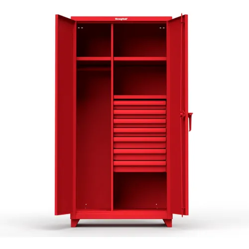 Stronghold Industrial Uniform Cabinet with 7 Drawers 36"W x 24"D x 75"H , Red