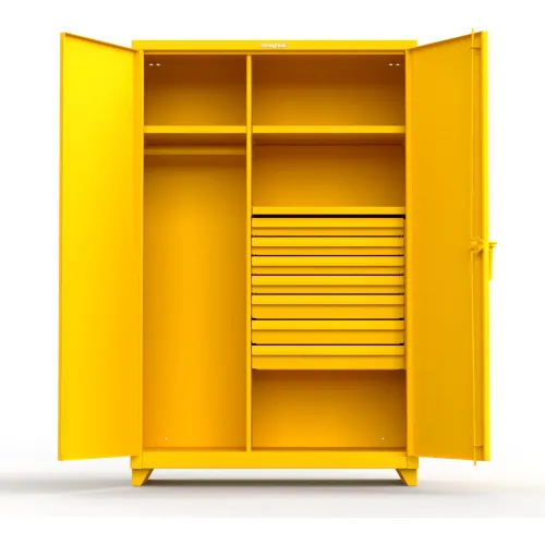 Stronghold Industrial Uniform Cabinet with 7 Drawers 48"W x 24"D x 75"H , Yellow