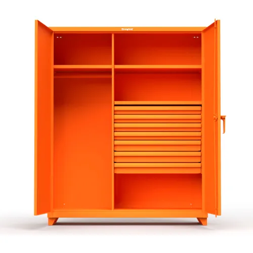 Stronghold Industrial Uniform Cabinet with 7 Drawers 60"W x 24"D x 75"H , Orange