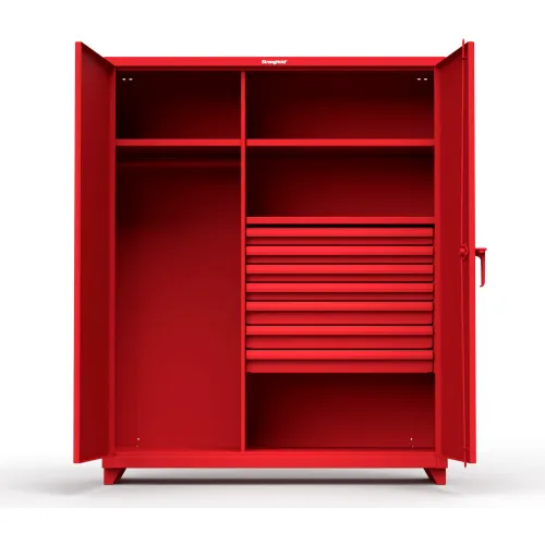 Stronghold Industrial Uniform Cabinet with 7 Drawers 60"W x 24"D x 75"H , Red