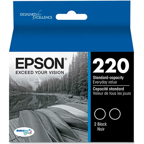 Epson® T220120D2 (220) DURABrite Ultra Ink, Black, 2/Pk