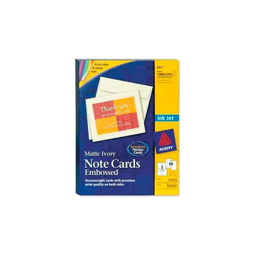 Avery® Inkjet Embossed Note Cards, 5-1/2" x 4-1/4", Matte, Ivory, 60 Cards/Box
