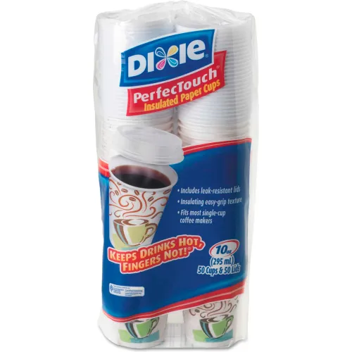 Dixie Insulated Cup/Lid Combo, PerfecTouch®, 10 Oz., 50/Pack, Coffee Dreams Design