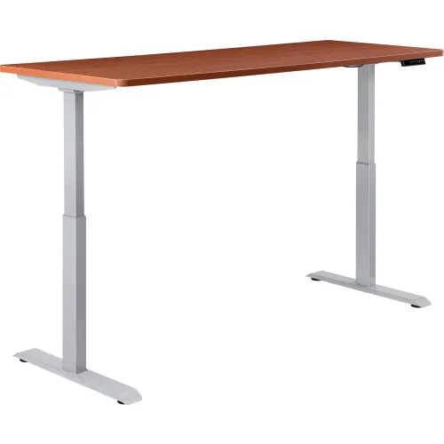 Interion® Electric Height Adjustable Desk, 60"W x 30"D, Cherry W/ Gray Base
