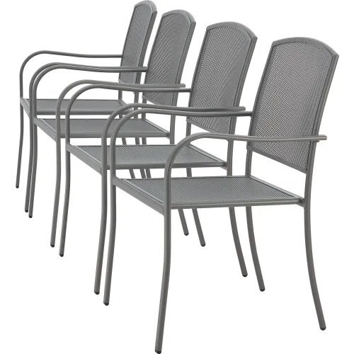 Global Industrial Outdoor Café Stacking Armchair, Steel Mesh, Gray, 4 Pack