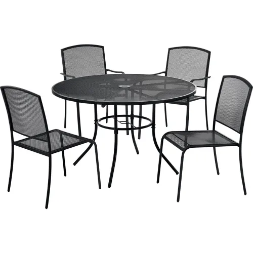 Global Industrial Mesh Café Table and Chair Set, 48" Round, 4 Armchairs, Black