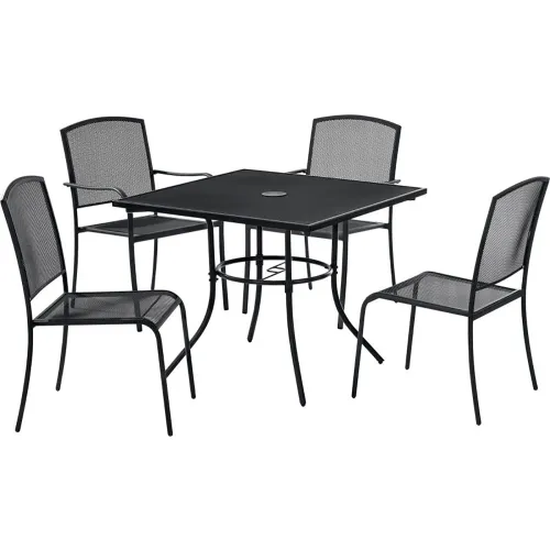 Global Industrial Mesh Café Table and Chair Set, 48" Square, 4 Armchairs, Black