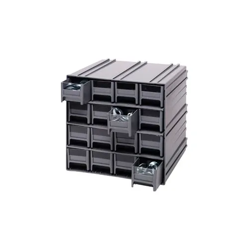 Quantum Interlocking Storage Cabinet QIC-161 - 11-3/4"Wx11-3/8"Dx11"H - 16 Gray Drawers