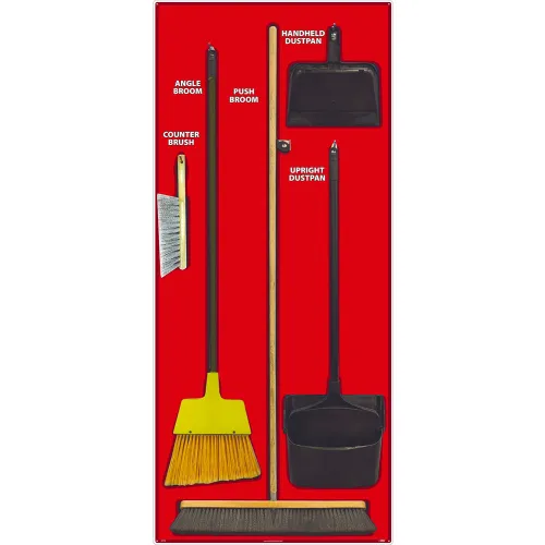 National Marker Janitorial Shadow Board Combo Kit, Red on Black, Industrial Grade Aluminum- SBK105AL