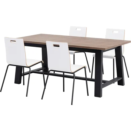 KFI Studios Jive 72"x 36" Dining Table Set, 4 Jive Natural Chairs, Teak Top/Black Frame