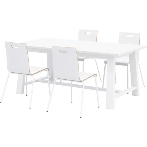 KFI Studios Jive 72"x 36" Dining Table Set, 4 White Chairs, White Top/White Frame