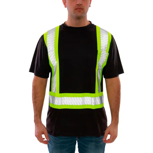 Tingley® Job Sight Class 1 Short Sleeve T-Shirt, Black with Fluorescent Yellow-Green, 5XL