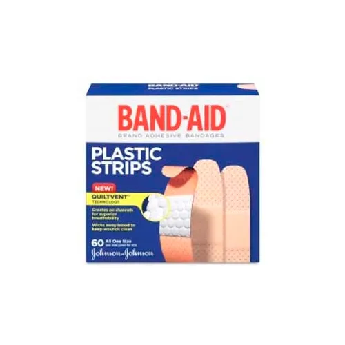 Johnson & Johnson Plastic Bandages, Adhesive, 3/4"W, 60BX, Plastic, Tan