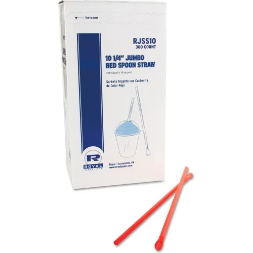 AmerCareRoyal® Jumbo Spoon Straws, 10-1/4"L, Red, 300/Pack, 18 Packs/Carton