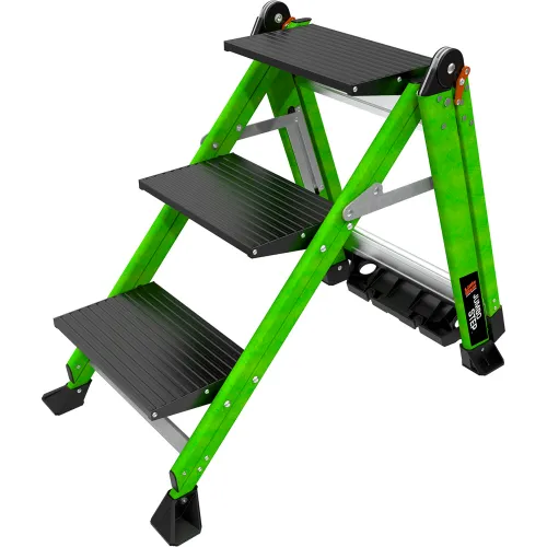Little Giant® Jumbo Step 3 Step Stool w/ Handrail, 4"L x 21"W x 26"H, Green