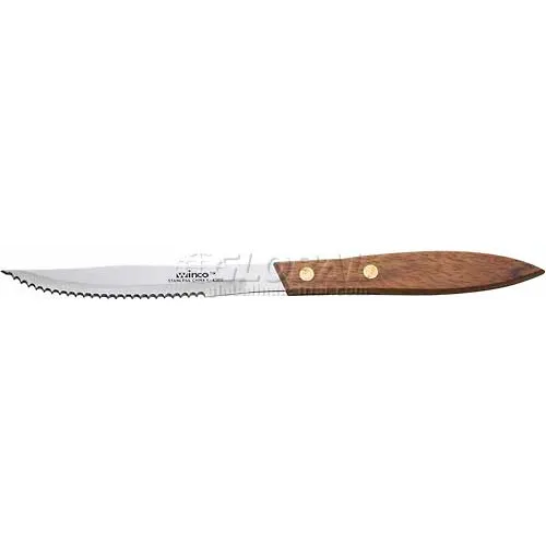 Winco K-438W Steak Knife, 4-3/8"L, Wood Handle, Pointed Tip, 12/Pack