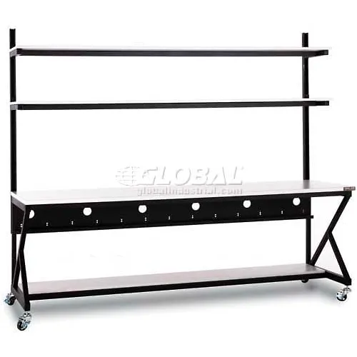 Kendall Howard 96" Performance 100 Series LAN Station with Half Bottom Shelf, Folkstone Gray