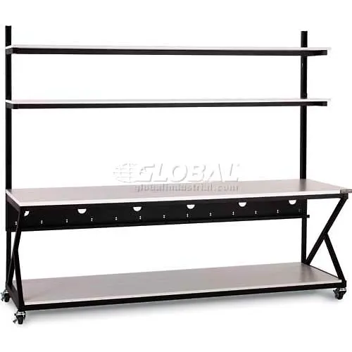 Kendall Howard 96" Performance 200 Series LAN Station with Full Bottom Shelf, Folkstone Gray