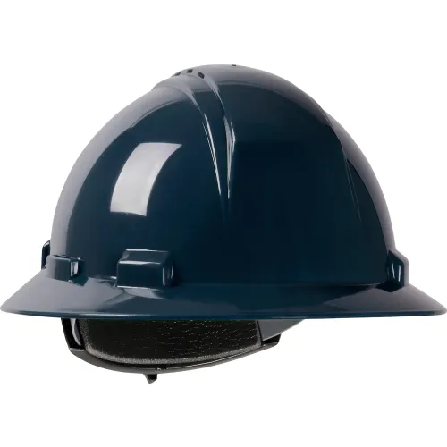 Kilimanjaro Full Brim Hard Hat HDPE Shell, Vented, 4-Pt Suspension, Ratchet Adjustment, Navy