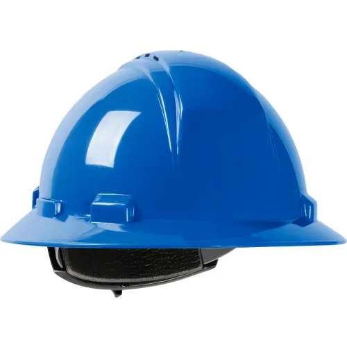 Kilimanjaro Full Brim Hard Hat HDPE Shell, Vented, 4-Pt Suspension, Ratchet Adjustment, Royal