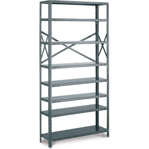 Tri-Boro Klip-It 8 Shelf, 20 Ga Open Solid Steel Shelving, Starter, 48"Wx12"Dx73"H, Dark Gray