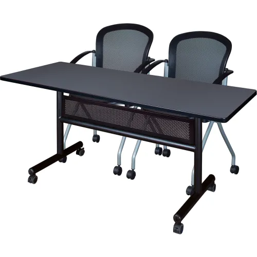 Regency® Kobe Privacy Nesting Table with 2 Cadence Nesting Chairs, 60"L x 24"W, Gray