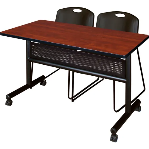 Regency® Kobe Privacy Nesting Table with 2 Zeng Black Stack Chairs, 48"L x 24"W, Cherry