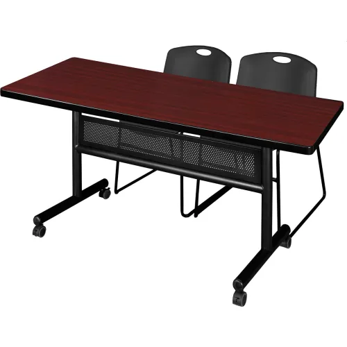 Regency® Kobe Privacy Nesting Table with 2 Zeng Black Stack Chairs, 60"L x 30"W, Mahogany