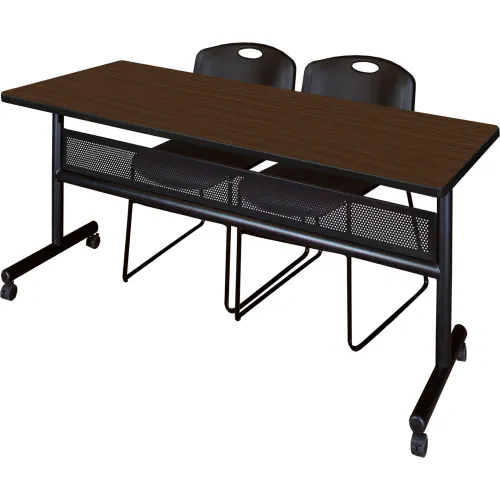 Regency® Kobe Privacy Nesting Table with 2 Zeng Black Stack Chairs, 72"L x 30"W, Neo Walnut