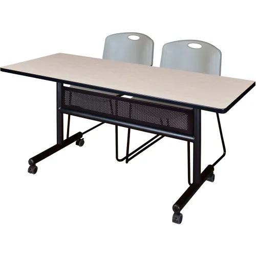 Regency® Kobe Privacy Nesting Table with 2 Zeng Gray Stack Chairs, 60"L x 24"W, Maple