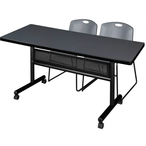 Regency® Kobe Privacy Nesting Table with 2 Zeng Gray Stack Chairs, 60"L x 30"W, Gray