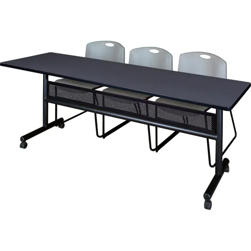 Regency® Kobe Privacy Nesting Table with 2 Zeng Gray Stack Chairs, 84"L x 24"W, Gray