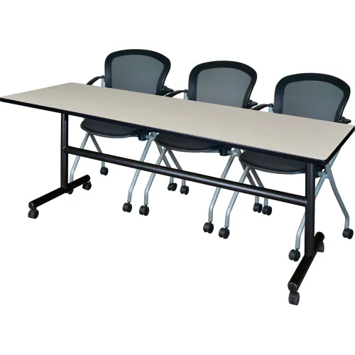 Regency® Kobe Training Nesting Table with 2 Cadence Nesting Chairs, 84"L x 24"W, Maple