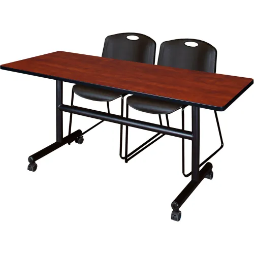 Regency® Kobe Training Nesting Table with 2 Zeng Black Stack Chairs, 60"L x 30"W, Cherry