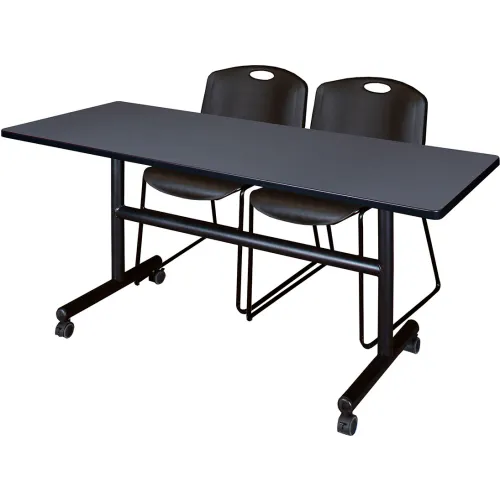 Regency® Kobe Training Nesting Table with 2 Zeng Black Stack Chairs, 60"L x 30"W, Gray