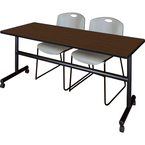 Regency® Kobe Training Nesting Table with 2 Zeng Gray Stack Chairs, 72"L x 24"W, Neo Walnut