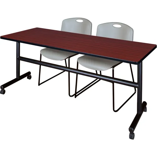 Regency® Kobe Training Nesting Table with 2 Zeng Gray Stack Chairs, 72"L x 30"W, Mahogany