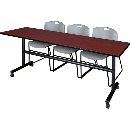 Regency® Kobe Training Nesting Table with 2 Zeng Gray Stack Chairs, 84"L x 24"W, Mahogany