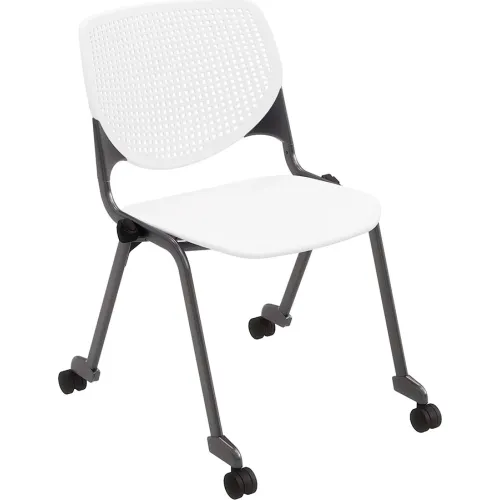KFI Studios Kool Armless Stacking Chair with Casters, Polypropylene, White Seat/Black Frame