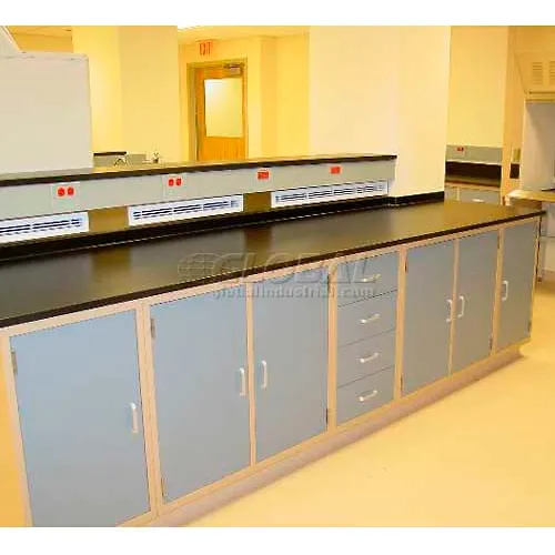 Lab Design Sink Bench, 8 Doors, 5 Drawers, 196"W x 30"D, Navy Blue